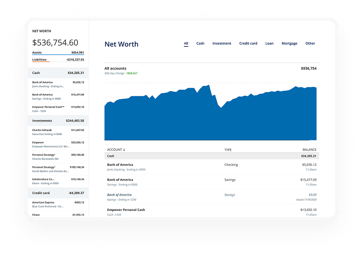Because getting good at money starts when you see the full picture of your investments, cash, credit, and other accounts.